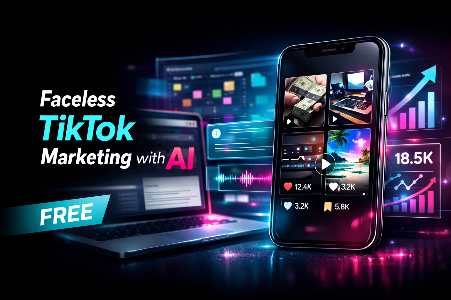 Master faceless TikTok marketing with AI tools like ChatGPT and Canva. Learn how to create content faster, grow your audience, and build a repeatable short-form content system without showing your face.